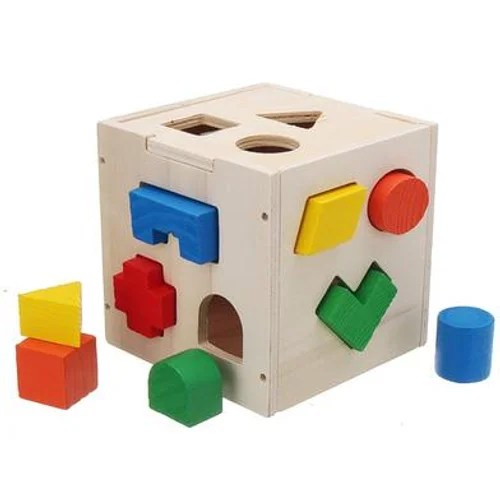 - The wooden box features corresponding holes for each shape, providing a satisfying challenge for young learners.